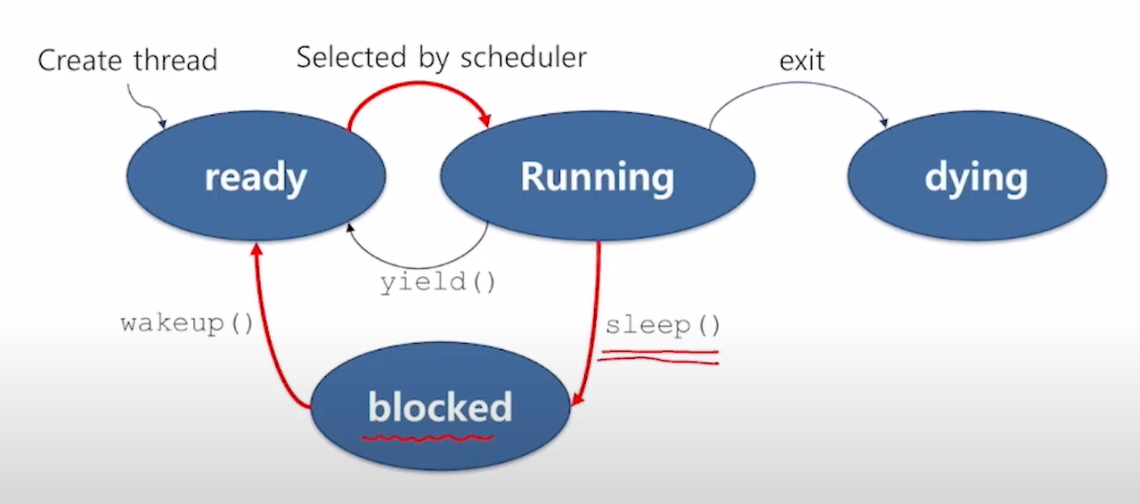 1. 쓰레드 상태를 blocked로 만들고, sleep queue에 삽입한 뒤 대기하는 동작