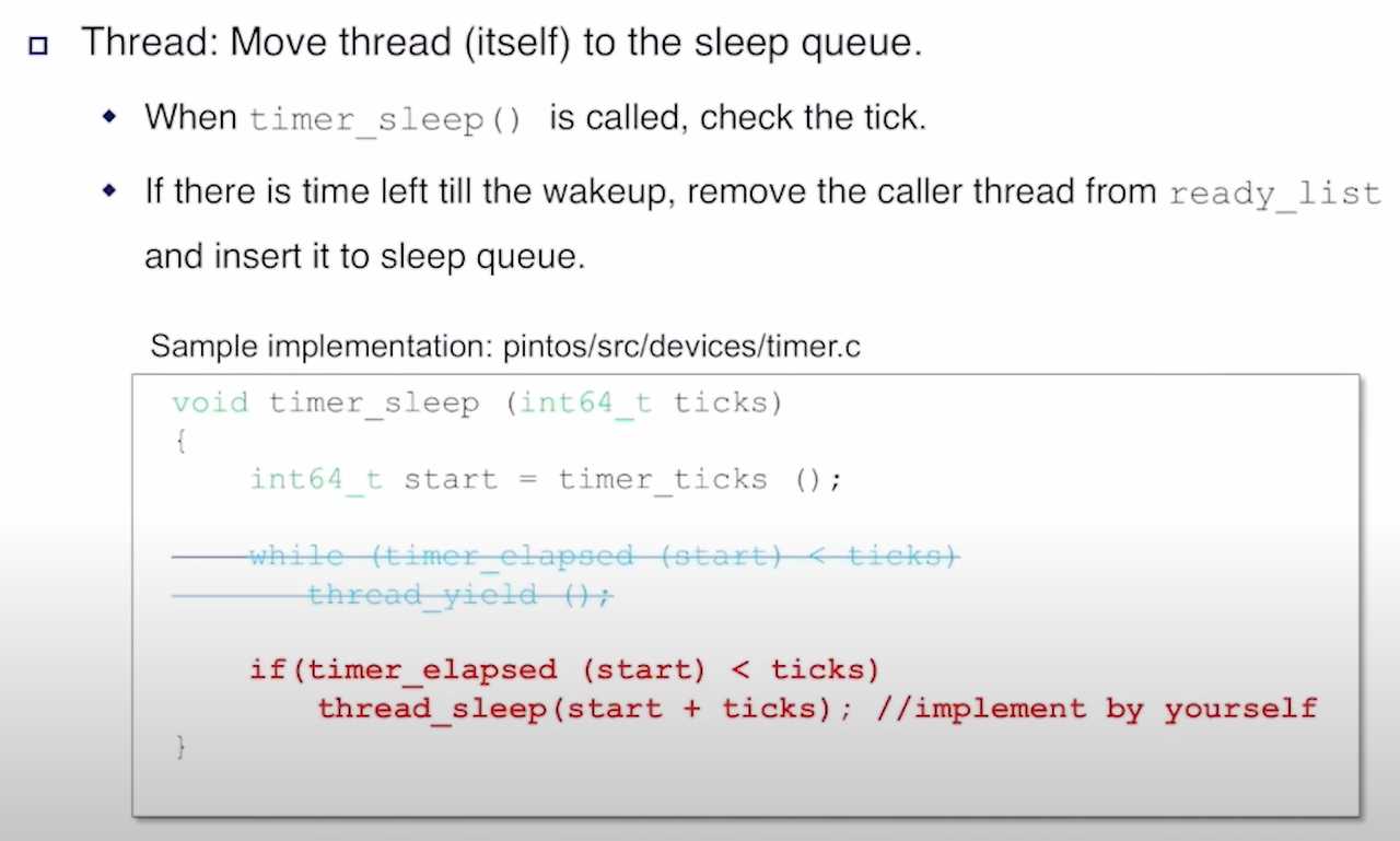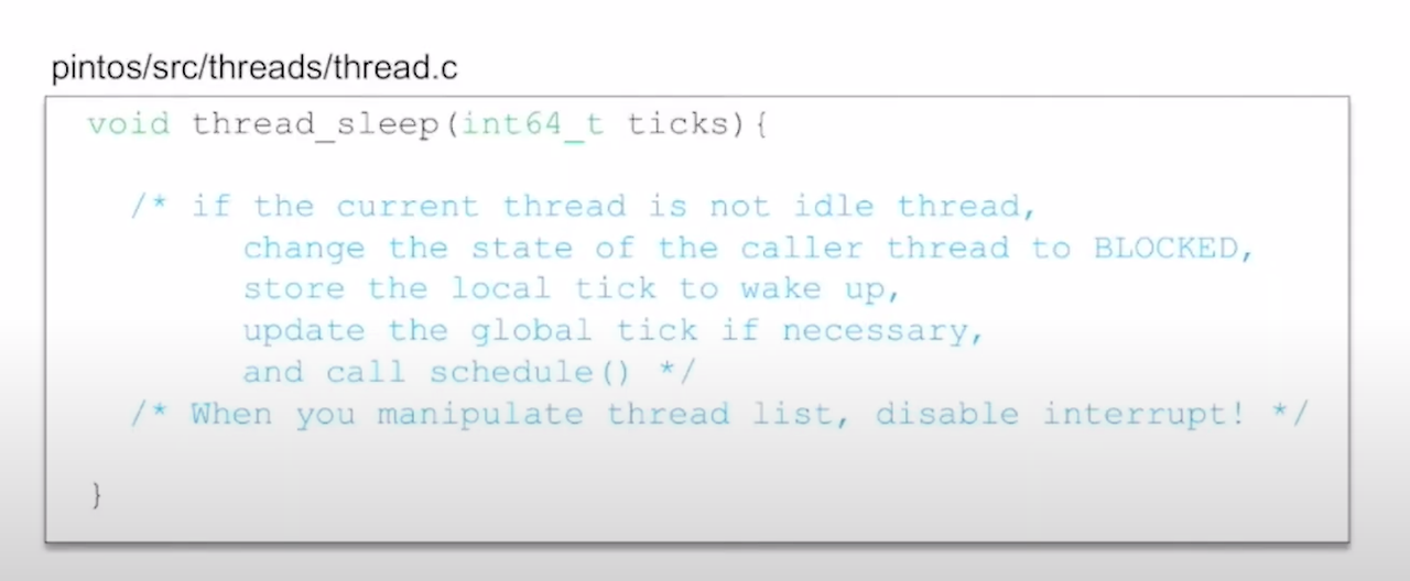 모든 틱마다, sleep queue에 있는 쓰레드가 wake up 하는 걸 체크할 것