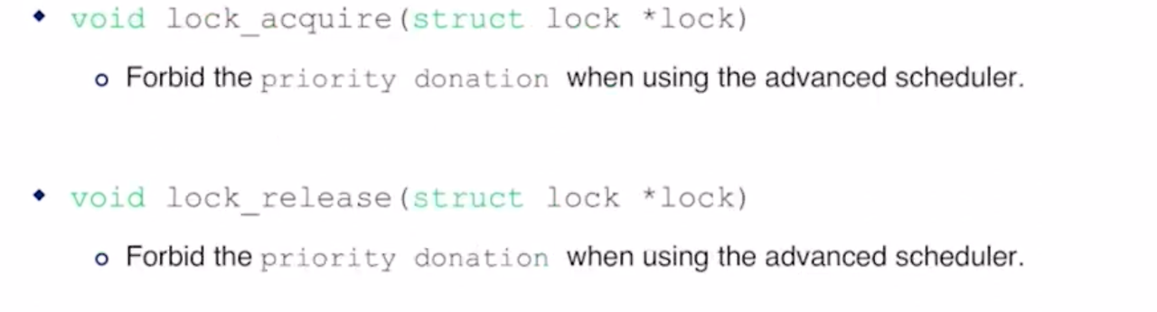 advanced scheduler를 사용할 때는, prioirty donation 금지 !