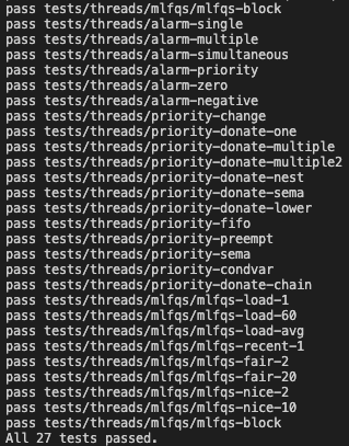 전체 실행 : make check -> make -mlfqs check