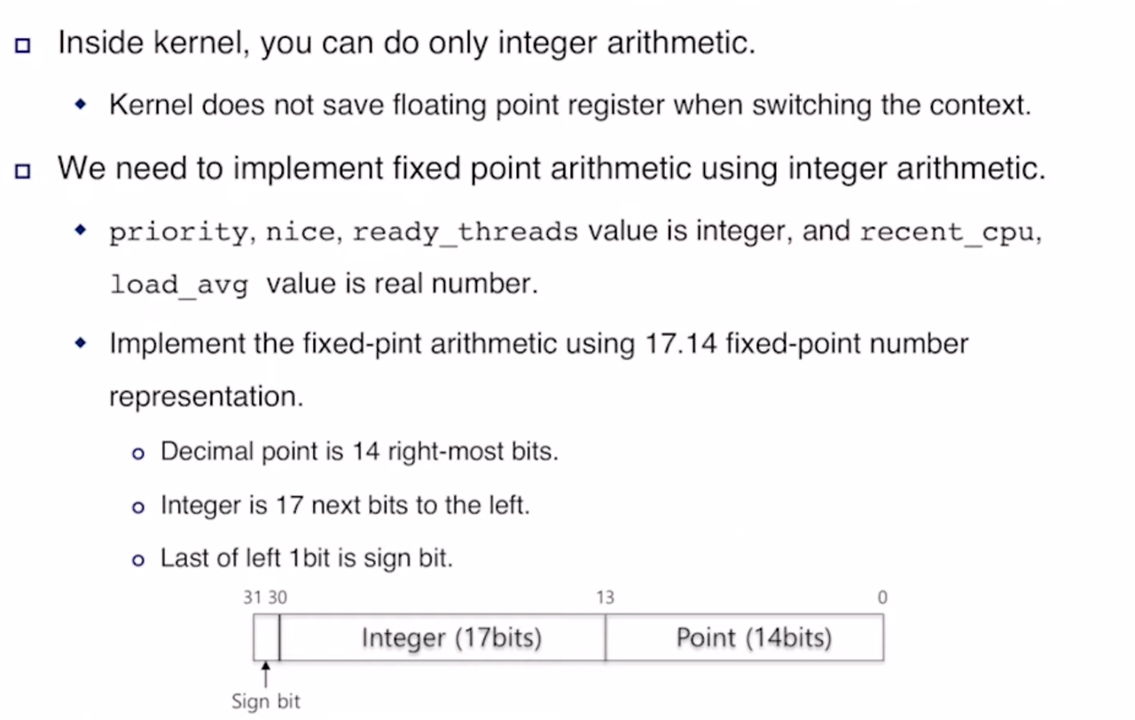 - structure thread에, 새로운 필드 추가해야 함 [nice, recent_cpu]