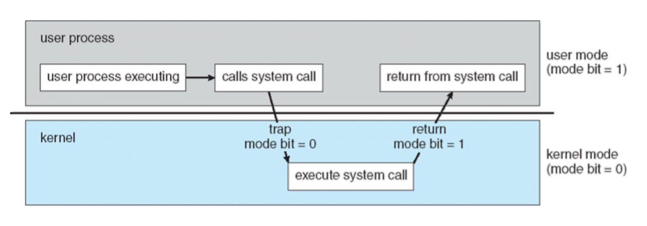 - Mode bit로 모드를 구분 (0 == kernel / 1 == user)