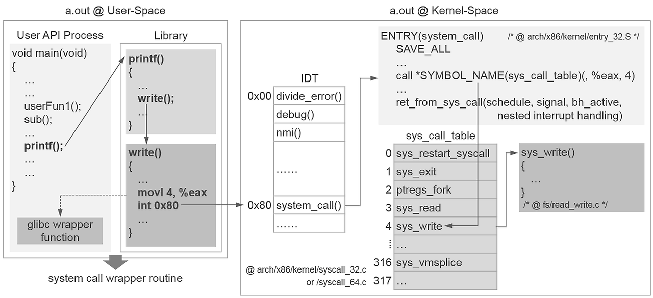 5. IDT(Interrupt Descriptor Table)을 참조하여 system_call()을 호출한다
