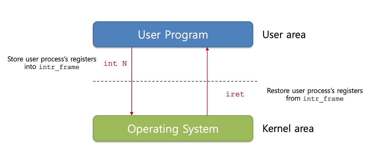 - int() 함수를 사용하면, user program이 operating system으로 트랩됨 (user -> kernel)