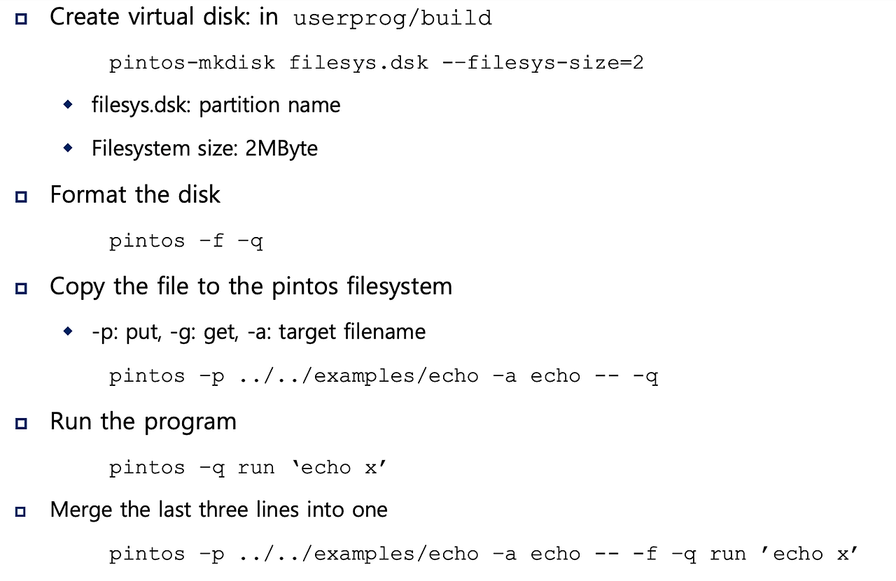 - pintOS에서 user program을 실행하는 것
