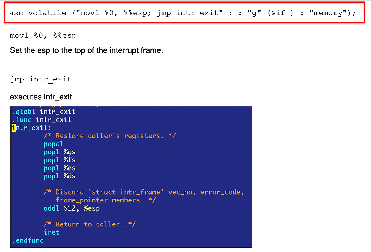- move : 현재 스택 (kernel stack)의 맨 위를 가리키도록 설정 -> Interrupt frame의 맨 위 가리킴