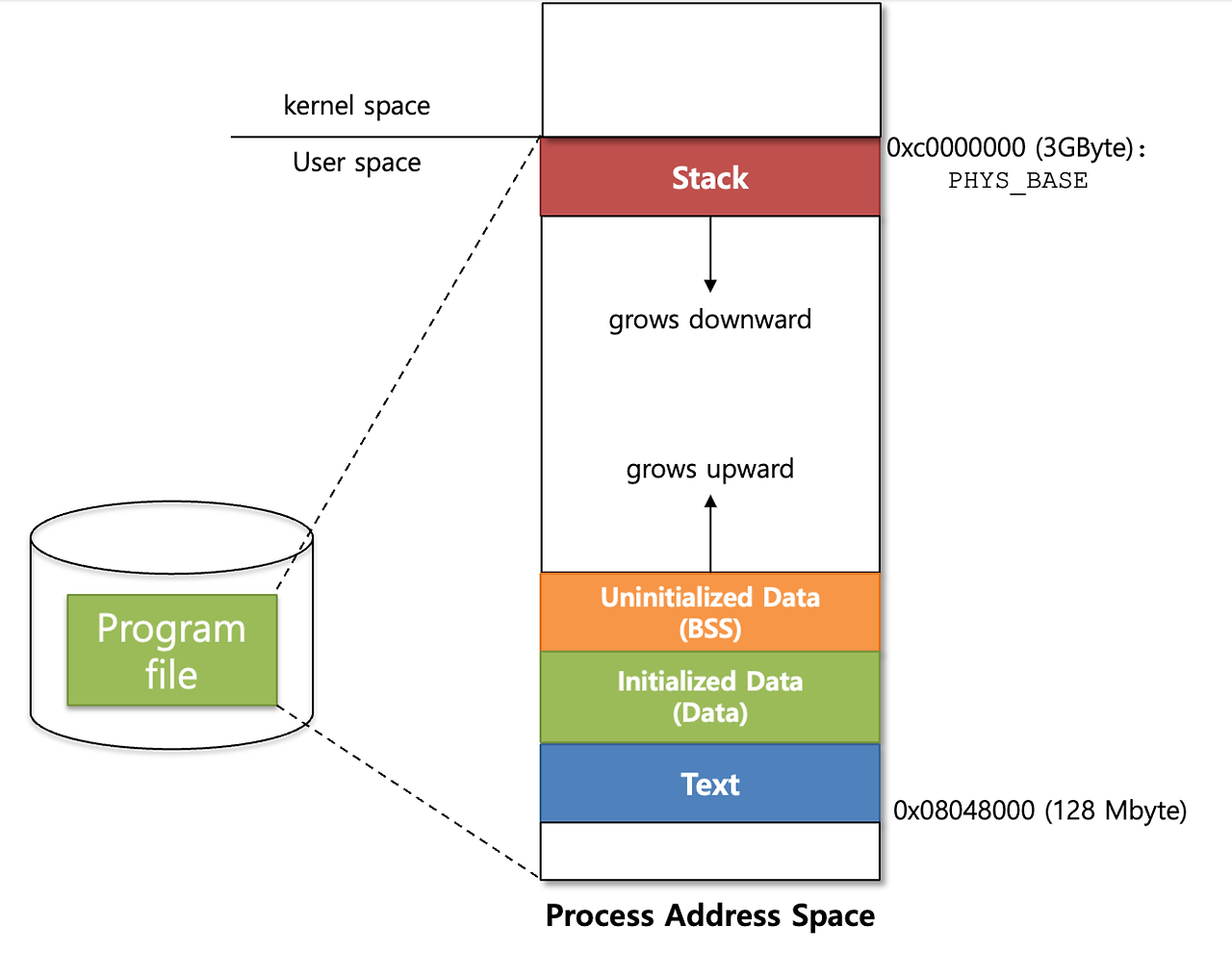 - [text + DATA + BSS] 세그먼트로 구분되지만, OS의 경우 [DATA, BSS] 위치가 바뀔 수 있음