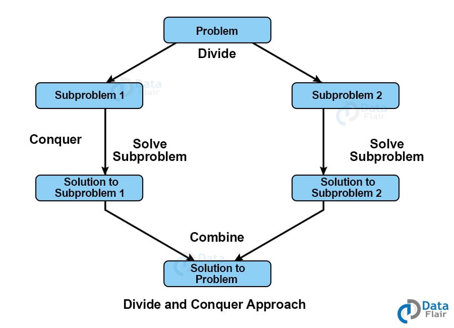 - 주어진 문제를 2개 이상의 유사한 하위 문제로 분할하여, 각 하위 문제에 대한 해결 이후, 해결들을 합쳐 처음 문제를 해결하는 방법